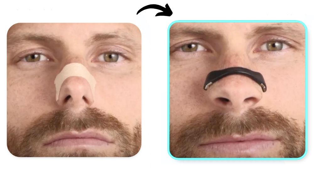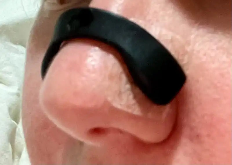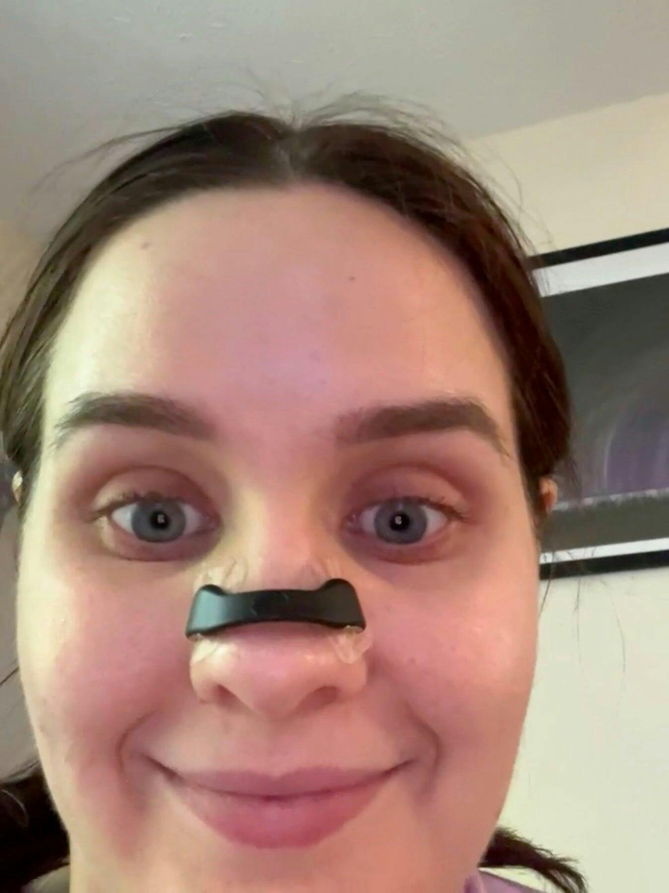 Place the magnetic nasal strip on your nose and let the magnets work their magic.