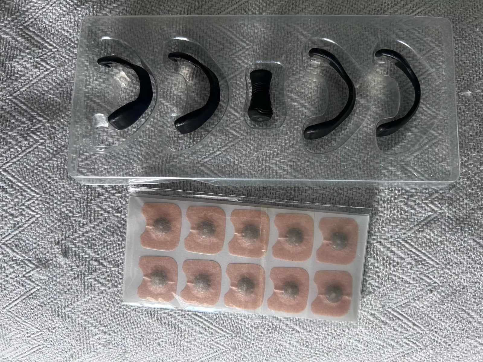 Use the magnetic applicator to pick up each tab. Correct placement is crucial—apply one tab to each side of your nose and press down firmly to secure.