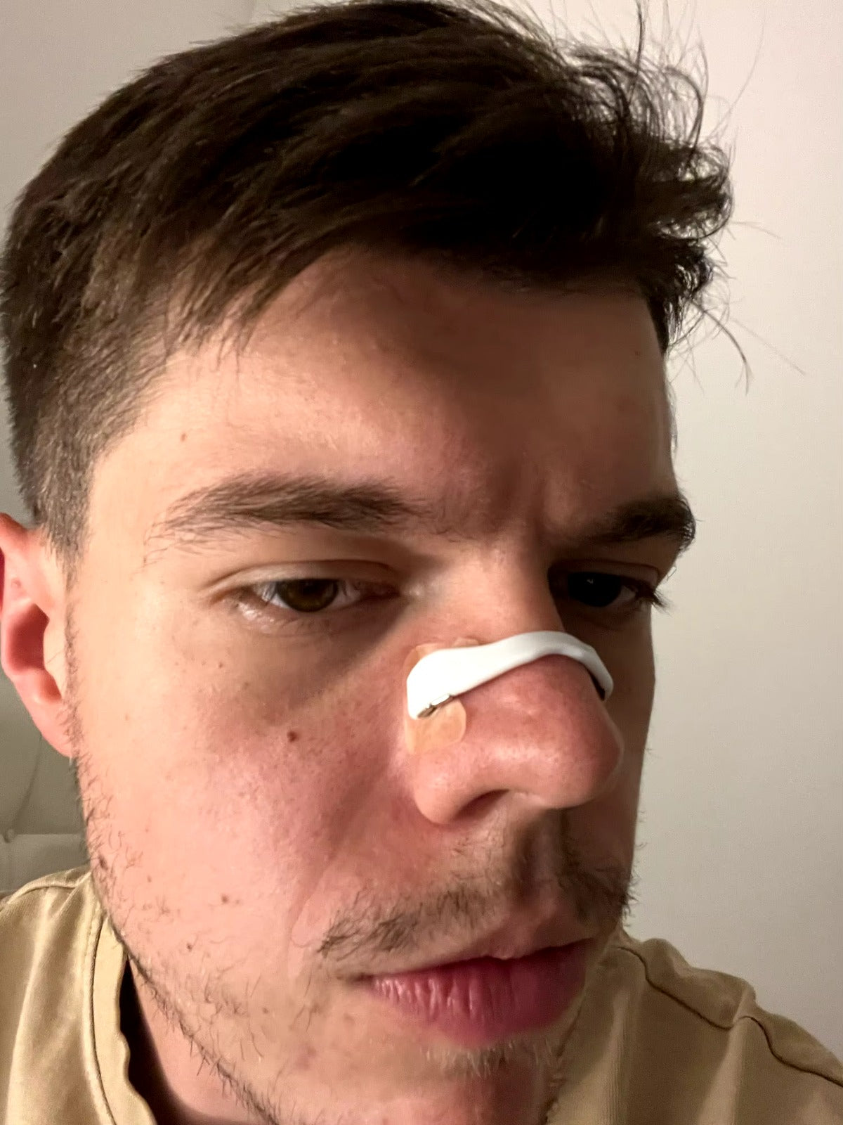 Allow 3-5 minutes for the adhesive to fully set before applying the nasal strip.